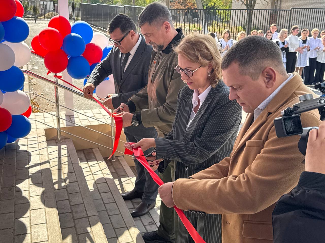 Вице-премьер Донецкой Народной Республики Лариса Толстыкина и министр образования и науки ДНР Олег Трофимов открыли отремонтированную Розовскую школу.