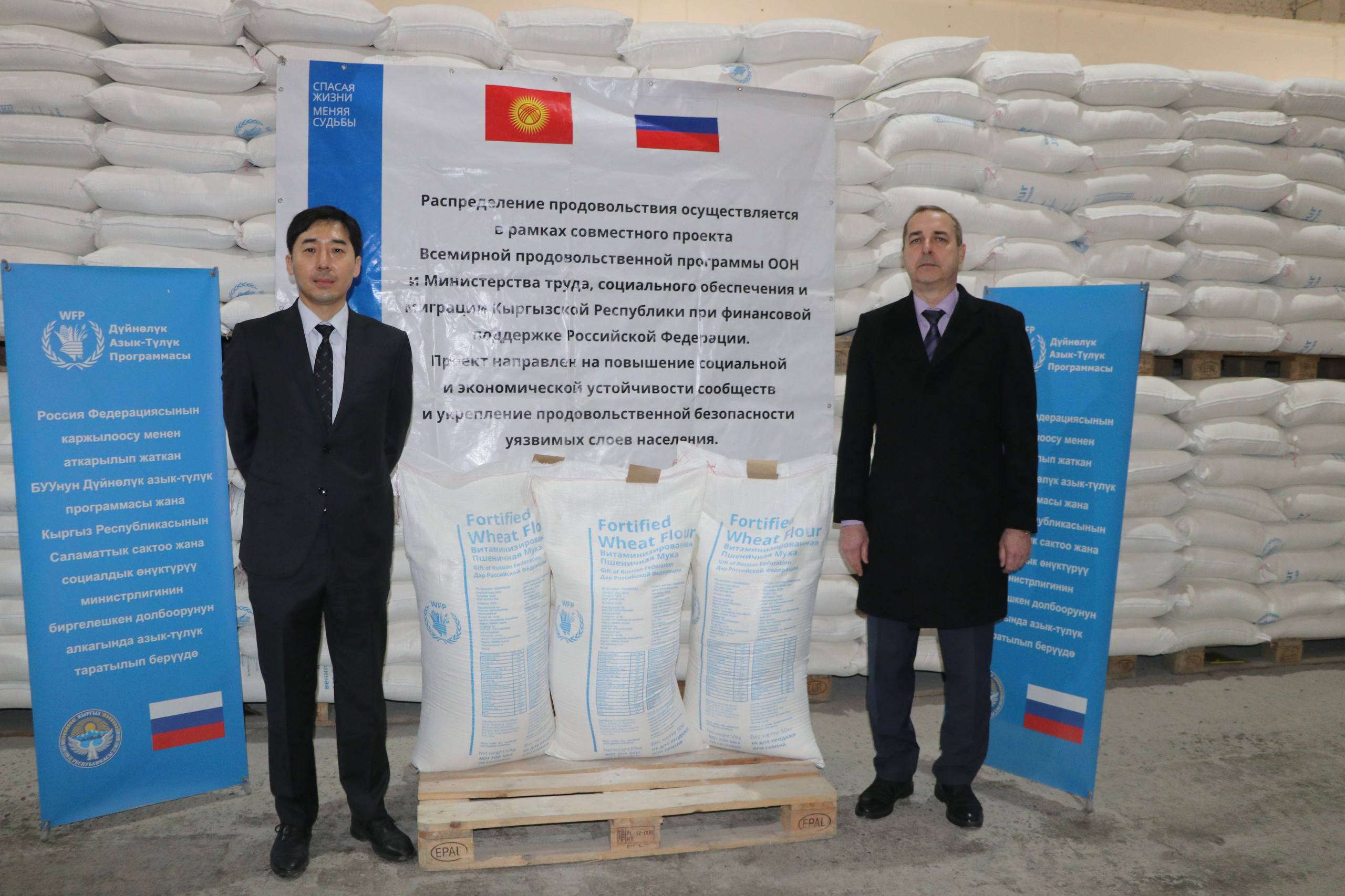 «В Оше 9 декабря Генконсул России Р.Свистин и заместитель странового директора Всемирной продовольственной программы ООН в Кыргызстане С.Хан приняли участие в торжественной церемонии передачи очередной партии гуманитарной помощи (877 т витаминизированной пшеничной муки), поставляемой Россией по линии ВПП ООН», – сказано в публикации диппредставительства.